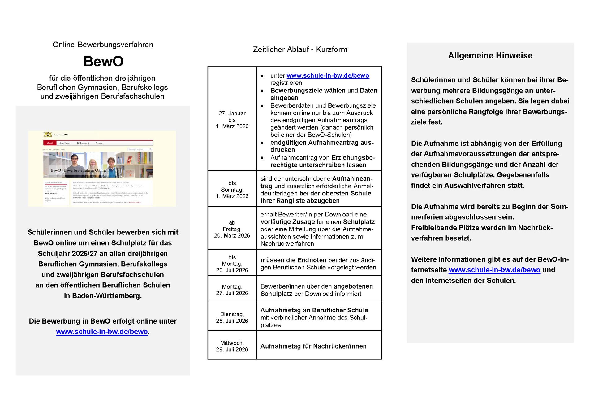 BewO - Online-Bewerberverfahren berufliches Gymnasium und Berufskolleg ab 27.01.2026 bis 01.03.2026
