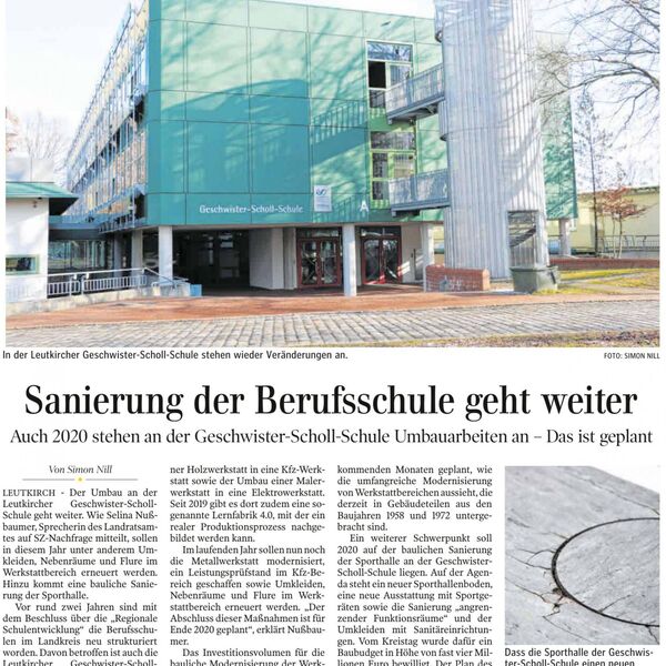 Sanierung der Berufsschule geht weiter (SZ vom 21.01.2020)