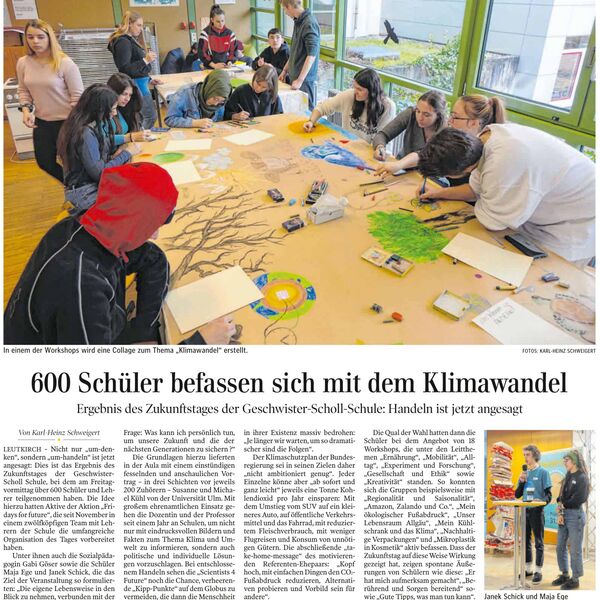 600 Schüler befassen sich mit dem Klimawandel (SZ vom 03.02.2020)