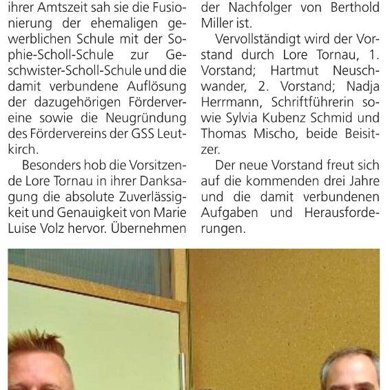 Neuer Vorstand im Förderverein der GSS Leutkirch (SZ vom 26.10.2024)